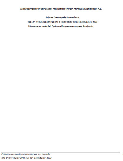 ΑΝΕΜΟΔΡΑΣΗ ΜΟΝΟΠΡΟΣΩΠΗ ΑΝΩΝΥΜΗ ΕΤΑΙΡΕΙΑ ΑΝΑΝΕΩΣΙΜΩΝ ΠΗΓΩΝ Α.Ε.