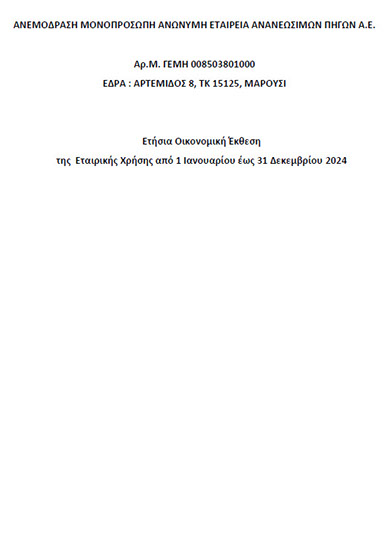 ΑΝΕΜΟΔΡΑΣΗ ΜΟΝΟΠΡΟΣΩΠΗ ΑΝΩΝΥΜΗ ΕΤΑΙΡΕΙΑ ΑΝΑΝΕΩΣΙΜΩΝ ΠΗΓΩΝ Α.Ε.